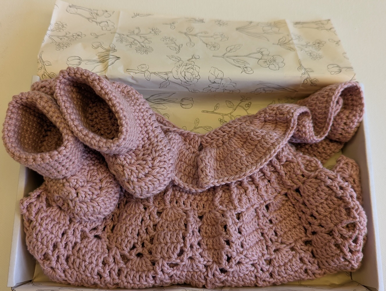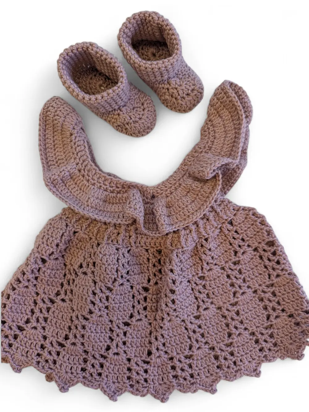 This beautiful handmade baby dress and bootie set is the perfect unique gift for a friend or loved one’s baby shower. Sure to be a treasured keepsake for mother and child.